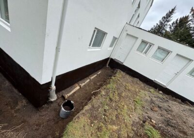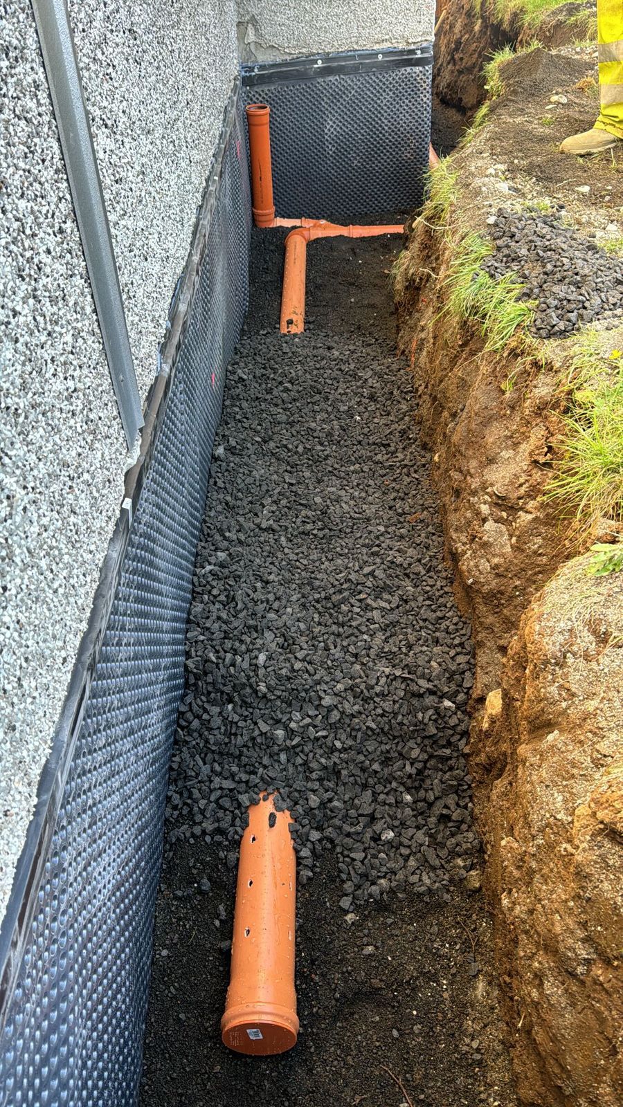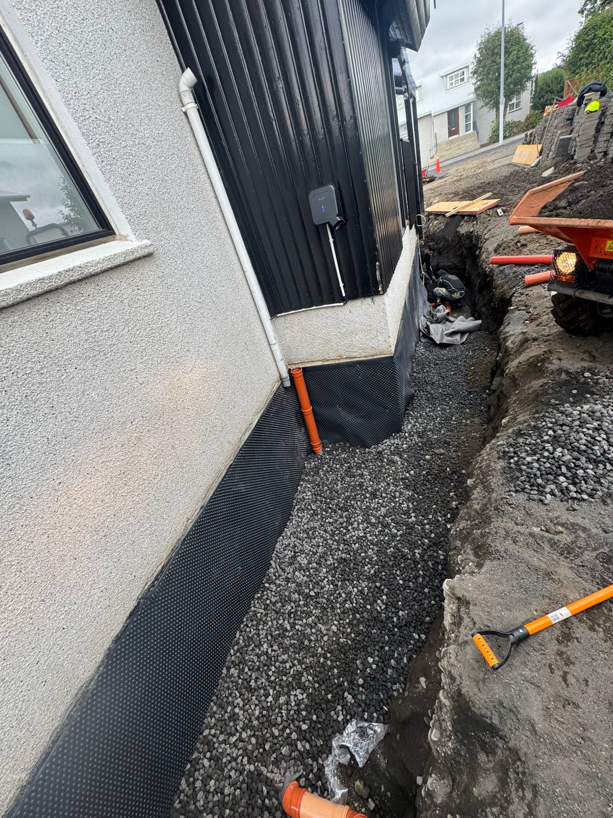 Drenlagnir gegna því mikilvæga hlutverki að beina vatni frá útveggjum og koma þannig í veg fyrir raka og skemmdir. Vatn getur safnast við hús sem standa í halla eða þar sem jarðvegur hleypir regnvatni ekki niður. Drenlagnir eru grafnar niður umhverfis húsið og beina vatni frá húsinu. Hafa þarf í huga ástand lóðar og skipuleggja framkvæmdir vandlega til að valda sem minnstu raski. Þá er hægt að handgrafa niður að sökkli og meta þörfina fyrir drenlagnir áður en farið er í framkvæmdir.
